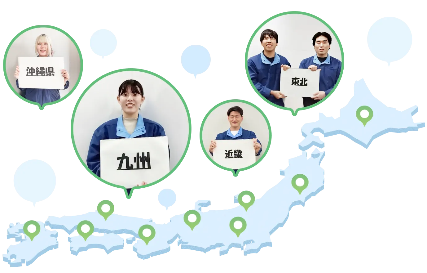 先輩たちが活躍中!各エリアごとに先輩たちから皆さんにエールが届いています。ぜひご覧ください。