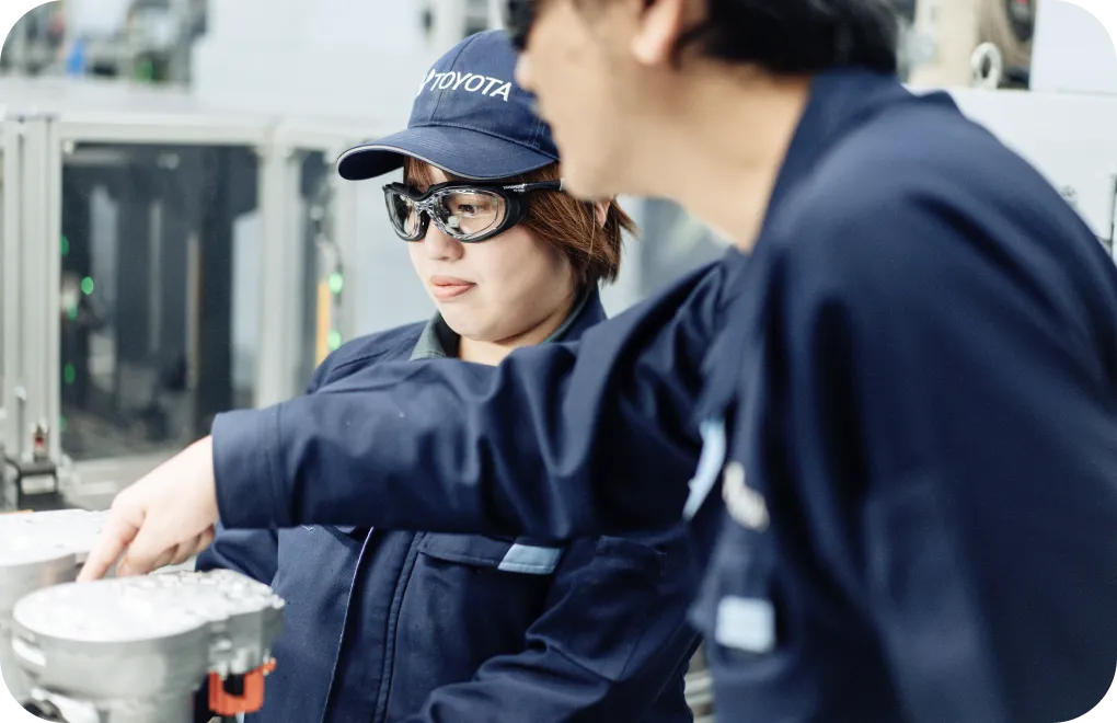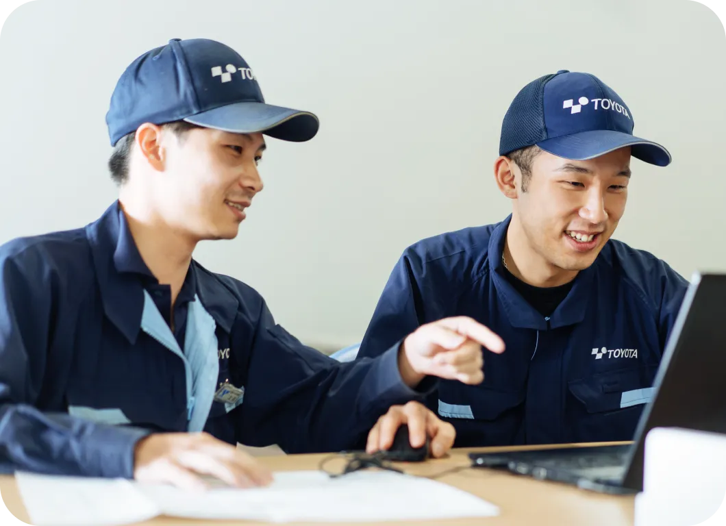 豊田自動織機では、入社1年目から自信をもって業務に取り組み、一歩ずつ技能の研鑽を重ねられるように、多くのフォロー制度や研修を設けています。職制に上がってもそのレベルに合わせた資格取得を推進していることも、豊田自動織機で多くの社員が活躍する「秘訣」です。