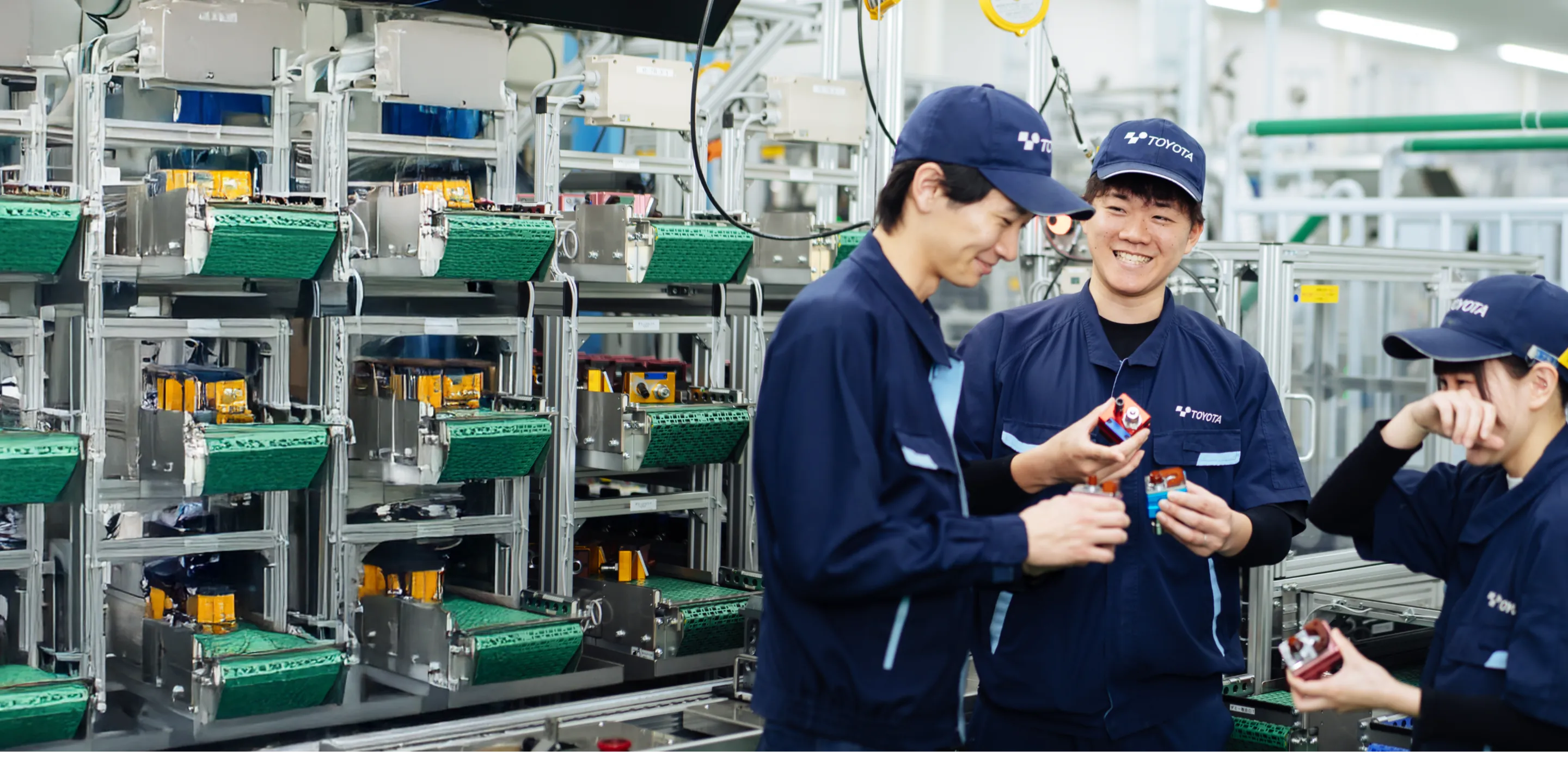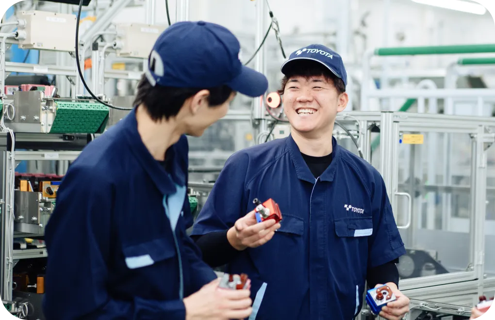 入社から2週間、会社制度や規律、社是(豊田綱領)について学ぶと同時に、現場で働くために必要な安全教育や資格を取得します。同期入社の仲間と一緒に2週間を過ごすため、同期同士の結束が強まります。